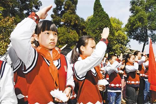3月31日,江津区漆南薰烈士墓,李市中小学的学生正在默哀致敬。当天,李市镇党政机关干部,李市中学、李市小学的学生和当地群众来到漆南薰烈士墓,开展一年一度的清明扫墓活动。通讯员 曹成 摄