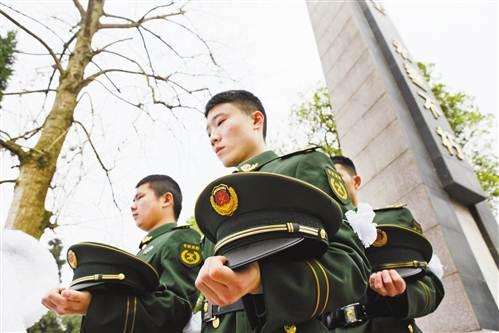 3月31日,永川区朱沱镇革命烈士陵园,部队官兵默哀致敬。当天,朱沱镇政府组织机关干部、驻镇单位全体干部职工、驻镇部队官兵、中小学师生及社会各界人士代表等400多人来到该烈士陵园,开展清明节祭奠英烈活动。通讯员 陈仕川 摄