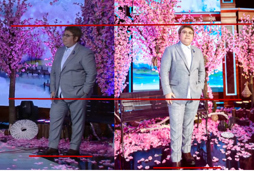 来,我们看一下对比图,这大长腿很明显哪,想不到韩红老师有一天也能成为大长腿的代表。