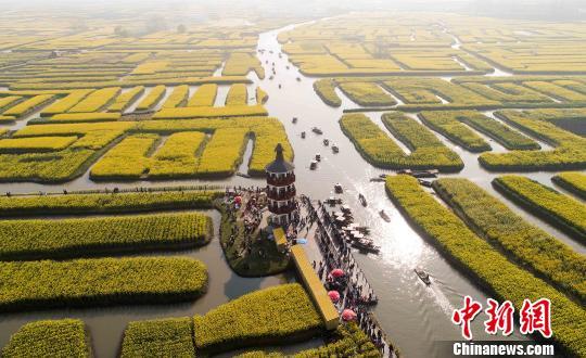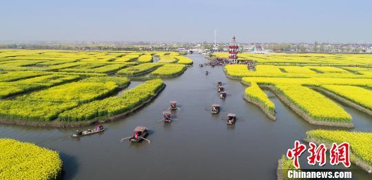 中新网南京4月3日电 (记者 崔佳明)3日,江苏兴化千垛油菜花盛开,万亩“垛田”披金装,洋溢着春天的气息和美丽,此景吸引了众多的游人前来踏青赏花。