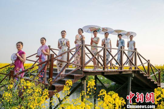 图为旗袍爱好者在兴化千垛菜花景区走秀。 汤德宏 摄