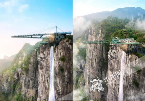 【重庆玻璃悬廊开放】近日记者从重庆万盛旅游局获悉,梦幻奥陶纪景区将于今年在园区内新增超惊险高空刺激项目——天空悬廊。此项目,悬空于数百米高的悬崖峭壁之上,沿悬崖向外挑80米的空中,故名天空悬廊。项目现正在申请吉尼斯世界纪录,有望成为万盛旅游新地标,该项目预计4月1日对游客开放。