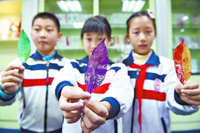 “制作叶脉书签的步骤看似简单,但在实际操作中,20片树叶才能做出一两个书签。”张卓颐说,大家要挑选革质的树叶,它们叶脉很密,摸起来比较硬,如桂花树、白玉兰树的叶子,而且叶片不要太老或太嫩。煮叶子时的烧杯必须放置在石棉网上,以免烧杯受热不均匀而破碎。