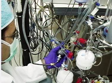 ▲技术人员准备人体冷冻过程中的灌注装置 图据Alcor