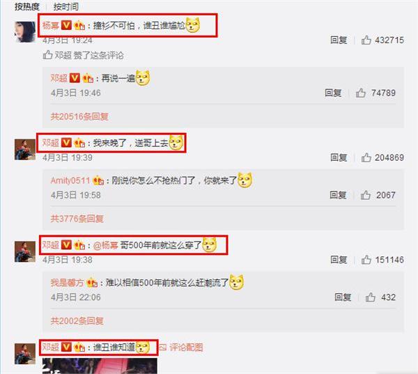 看到本尊回话,邓超是更来劲了,先是“威胁”对方“再说一遍”,随后又开启刷屏模式在下方疯狂留言让网友送自己上热评,表示自己在500年前就这么穿了。结果杨幂并不接招,他不得不亮出了在合作电影《分手大师》时的杀手锏。