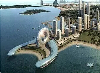 最初的设计方案是建造七大洲,但是迪拜人发现如此大块的岛屿不会有人买得起,因此将七大洲方案改为由300个人工小岛按照世界各大洲形状组成的人工群岛。让一座摩天大楼在空中旋转“跳舞”,听上去像是科幻小说。可迪拜就建设了这样一个建筑,它是世界首个风力发电的旋转摩天大楼。