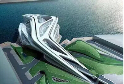 世界著名设计师扎哈·哈迪德设计的表演艺术中心像一个科幻世界里的变形虫,这个建筑的外面装饰了网状的玻璃窗结构。