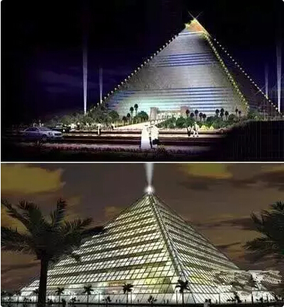 显然源于埃及金字塔所带来的灵感,又不失现代化的风格。这个金字塔充分利用空间,并将于两旁两个较小的金字塔房屋作为开发商的办事处和商业空间,使之整体成为一座庞大的主题公园。