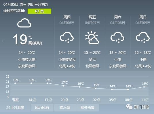 今天白天,鄂西南阴天有中雨,局部伴有雷电;江汉平原、鄂东南阴天有小到中雨; 其他地区阴天转小雨。