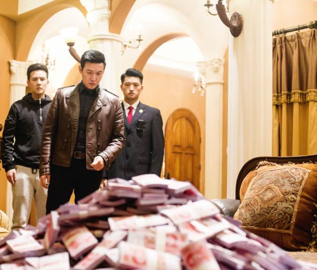 卧室里的西洋画占了整整一面墙壁。随着油画缓缓上升,后面暗藏的乾坤逐渐袒露在观众眼前,是密密麻麻,一捆一捆新旧不一的钞票。
