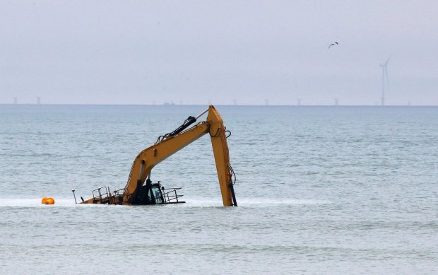 近日,英国苏塞克斯海岸线出现喜感一幕:一辆挖掘机被困在海中,被水淹没,不知所措。直到下一个涨潮日之前,别想让它回到岸上了。
