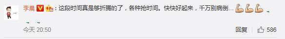 随后李晨也在评论区留言:“这段时间真是够折腾的了,各种抢时间。快快好起来,千万别病倒。”言语间流露出对范冰冰的关心。网友们也纷纷评论:“加油女神,照顾好自己!”
