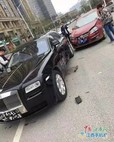 【大众怼上劳斯莱斯 交警纳闷:俩车都是直行咋撞的?】4月5日,南昌就发生一起大众怼劳斯莱斯的事故,黑色劳斯莱斯两扇车门受损严重。这辆劳斯莱斯市场价在600万到1000万。初步估计,这一撞几十万撞没了!