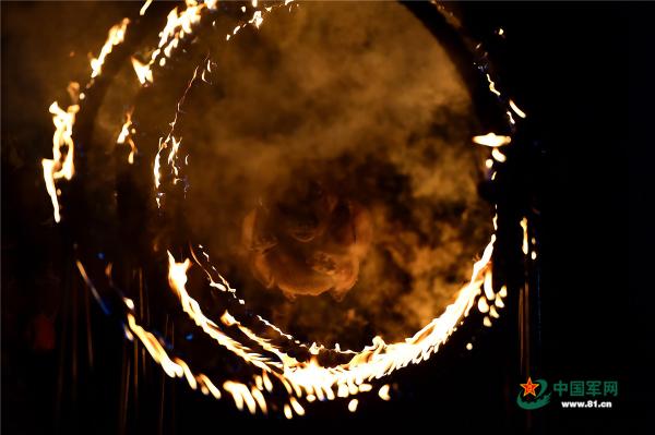 “道海,上!”蔡柏熹一声令下,“道海”如离弦的箭冲了出去,却在离火圈不到20厘米的地方停了下来。原来,火圈由之前的单个变成了重叠的五个,火苗猛蹿、浓烟弥漫,离火圈二、三米都能感受到扑面而来的热气。