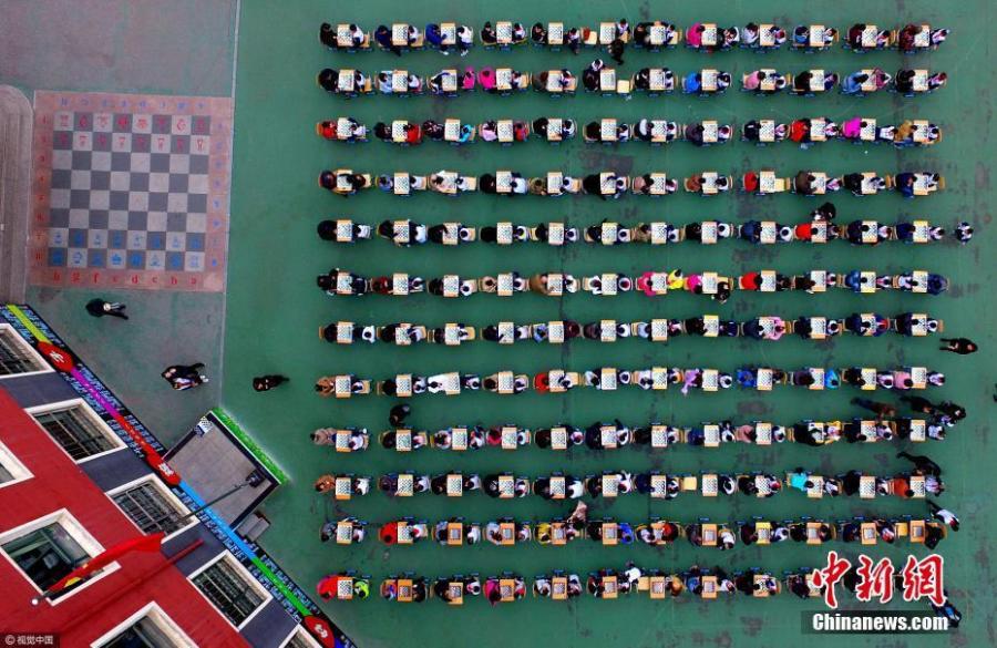 2017年4月6日,辽宁沈阳,“我跟孩子学下棋 亲子娱乐共成长”千人对弈活动在沈阳市铁路第三小学举行。当天是该校校园开放日,家长走进校园,走进课堂,和孩子学习、对弈国际象棋。据了解,该校是全国国际象棋后备人才培训基地,国际象棋是学校校本课程。 沈阳 摄 图片来源:视觉中国