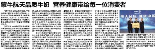 为给中国消费者提供更多健康、营养、优质、多元的乳制品,持续提升品质管理水平,蒙牛集团还与中国检验检疫科学研究院共同签署了“关于服务航天品质开展检测认证战略合作的意向书”,双方将加强检验检测、HACCP(食品安全危害分析与关键控制点)认证、“三同”(同线同标同质)认证、实验室技术等多方面的科研合作,全力打造国内“航天品质”乳制品,提升中国乳业国际竞争力和品牌影响力。