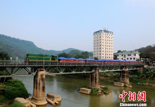 图为中越米轨铁路国际联运硫磺国际班列从中越铁路大桥入境 张伟明 摄