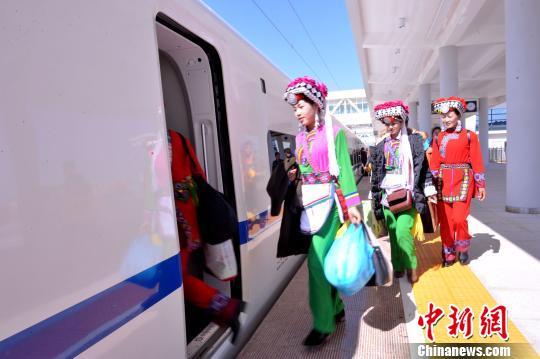 昆明铁路局已公交化开行了前往文山壮族苗族自治州、红河哈尼族彝族自治州、昆明市石林彝族自治县等民族聚集区的高铁动车,载着国内外游客源源不断地进入云南民族地区。(完)