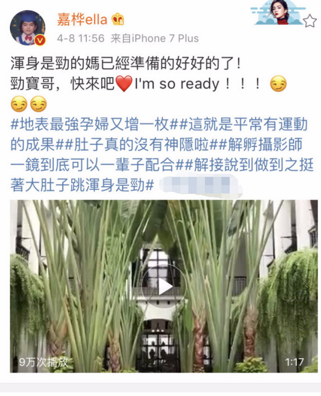 腾讯娱乐讯 今天中午,挺着大肚子的Ella在微博放出自己热舞的视频,快要到生产日期的Ella堪称地表最强孕妇,蹦蹦跳跳毫无压力。