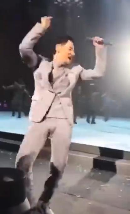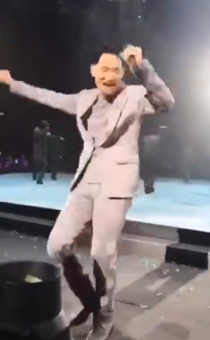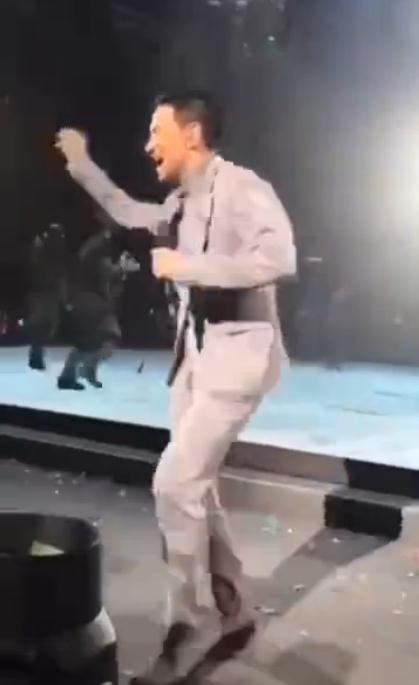 张歌神正跳着忘我的时候,台下的粉丝一直在喊“刘德华,刘德华,刘德华这边”。