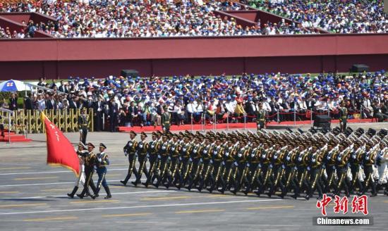 图为三军仪仗队方队接受检阅。中新社记者 杜洋 摄