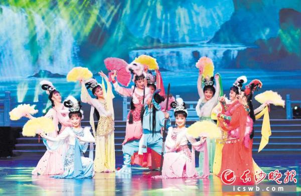 花鼓戏是国家级“非遗”剧种,其代表剧目《刘海砍樵》,经典唱段不仅在湖南家喻户晓,还赢得了祖国大江南北观众的喜爱。昨晚,由长沙市花鼓戏保护传承中心带去的花鼓小戏《海哥与九妹》,以浓郁的湖湘地方特色,赢得了现场观众的阵阵掌声。长沙歌舞剧院演出的民俗舞蹈《浏水清清》,选自长沙原创大型民俗舞台剧《浏水人家》,作品围绕“一首歌、一条河、一座城”展开,把洗夏布、浏阳客家山歌等浏阳河流域独有的山水神韵、民俗民风、建筑特色、非物质文化遗产、节庆文化等内容浓缩为一体,向观众展示出一幅浏河两岸优美的人文风情画卷,揭示母亲河——浏阳河养育的两岸人民勤劳智慧、热情善良的性格特点,彰显长沙人自强不息、敢为人先的豪迈精神与胸怀天下、勇于担当的民族气节。