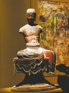 菩萨坐像。这尊塑像原高1.8米、通体呈红褐色,菩萨双目微阖、神情端庄,单腿屈膝盘坐于莲花宝座之上,被称为“东方维纳斯”。