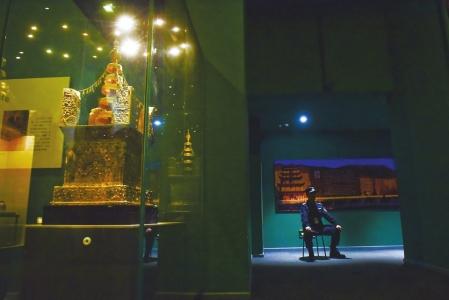 世界上保存最为完整、中国境内出土的体型最大的七宝阿育王塔,是本次大展最难点交的文物,最为复杂的一点是必须数清楚塔身上有多少颗宝珠、多少颗金钉。而塔身整整28个面上都镶嵌了小珠子,37面有金钉,工程量浩大。4个工作人员围着它数了一个下午,大家终于得到了一致的数字——285颗珠子,553颗钉子,这件精美的宝塔总算可以交接。