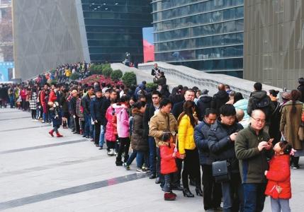 成博门口的门禁数据显示,每天上午10点和下午3点是客流量的高峰。大展在成都展出超过100天,平均每天客流量在1万到2万之间。展期跨越了元旦、春节、元宵、清明这4个节假日,那几天的观展人数居高不下,都几乎逼近了2万上限。