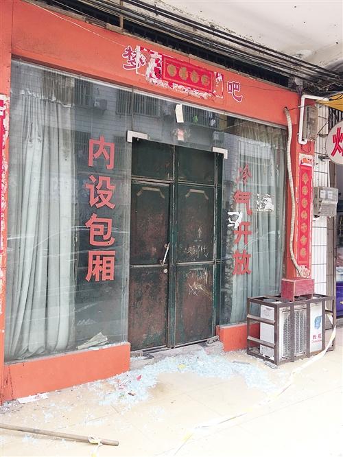 | 大沙田常乐二街门店被砸,玻璃散落一地 本报记者 陆增安 摄 |