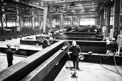 4月10日,甘肃建投钢结构有限公司焊接车间工作人员开展精细化焊接作业。该公司以科技研发为引领,以加工制作为支撑,以集约发展为方向,目前已经拥有轻钢、重钢、箱型、网架及彩钢板、檩条生产线,楼承板加工生产线等先进现代化生产设备。本报记者 张子恒