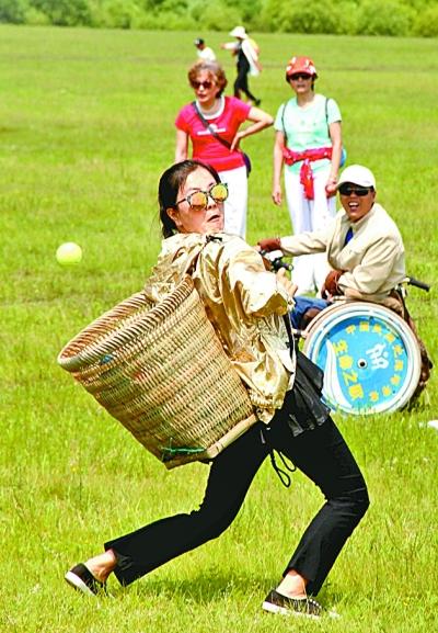 黑龙江省黑河市爱辉区举办的首届少数民族运动会上,参赛选手在进行接球比赛。光明图片/视觉中国