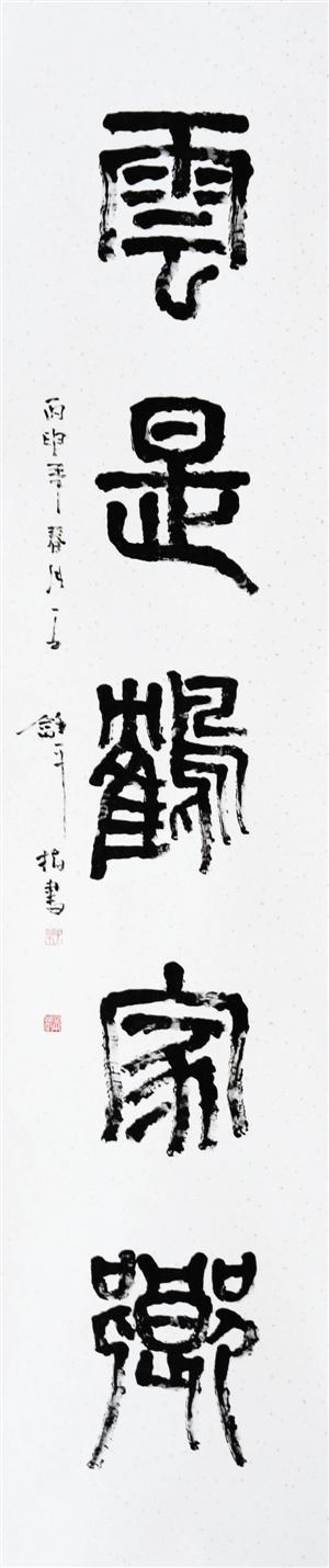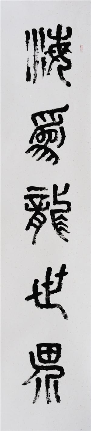 在他看来,指画的书法作品更能体现指画的魅力。评论家认为,在王和平的笔下,恰似石凿雕刻力透纸背的书法作品,恰到好处地体现笔画的紧凑、粗细、虚实、枯荣,有一种天然未雕饰之感。