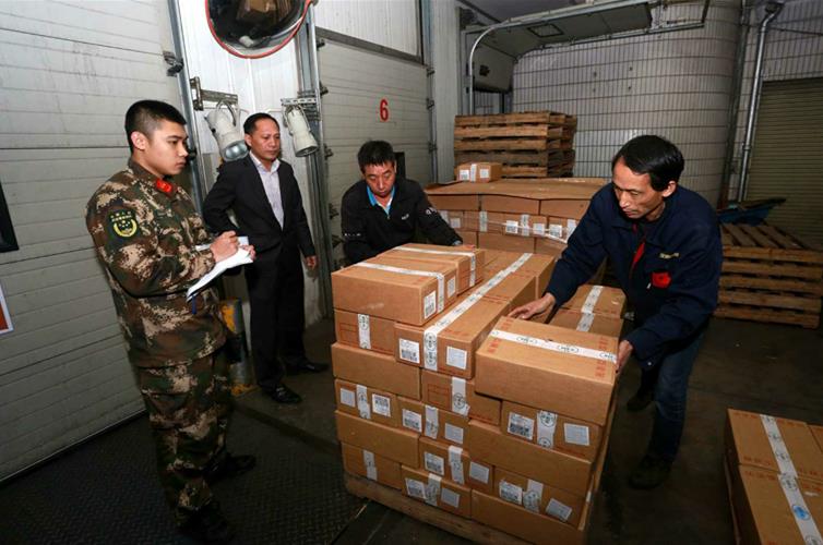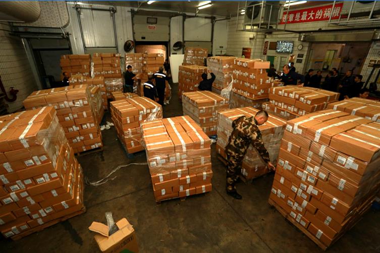 走私冻肉被送入冷库存放等待处理
