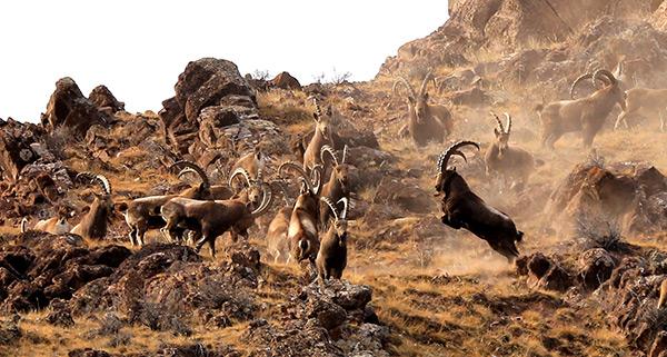 大规模的野生北山羊公羊聚集和斗架,这样的画面可遇不可求 摄影:沈志君
