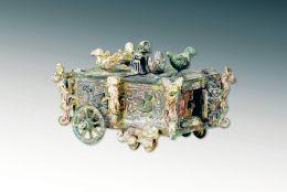 1989年,山西省考古研究所研究员张崇宁主持发掘了闻喜上郭村墓葬群,其中一件青铜奇器最使人惊赞,即刖人守囿车。这件青铜厢式六轮车制作精巧,车身镶嵌的各种伏兽形态各异,栩栩如生。