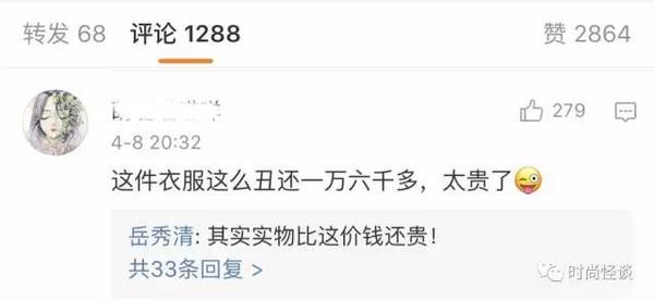 岳秀清老师在微博回复网友:这件外套的实际价格比一万六还贵。EXO ME ?
