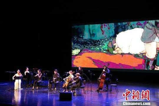 12日晚,“天空之城”久石让·宫崎骏经典动漫作品视听交响音乐会在青海大剧院上演。图为乐团正在演奏。 张海雯 摄
