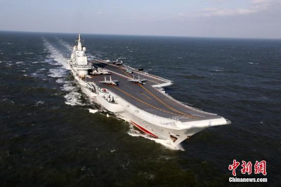 资料图:中国海军辽宁舰在渤海某海域进行舰机融合训练。中新社发 李唐 摄