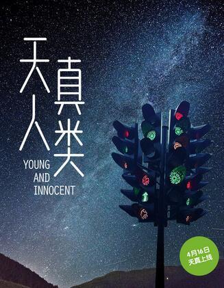 海报中,以仰视角度呈现辽阔而深远的星空,大面积暗色调与伫立于眼前的路灯形成鲜明对比,不同方位指示牌与红绿灯交织辉映,映射出都市青年迷茫不知何处去的内心世界,犹如置身于黑暗处寻得的一丝光明一般。海报一侧醒目的英文“YOUNG AND INNOCENT”个中意味十足,充分暗示了片名“天真人类”对当今社会涉世未深的年轻人在人生十字路口徘徊不前的诠释。影片讲述了小岛(尚文答饰演)是一个胸无大志的凌晨档谈话节目主播,作为心灵鸡汤导师,小岛的生活状态却是浑浑噩噩,得过且过。直到一位名叫大海的快递员(钱入富饰演)打进热线,从电话联系到现实碰撞,与大海的相处过程中,小岛被大海的热情所感染,原本停滞不前的生活逐渐有了新的起色。
