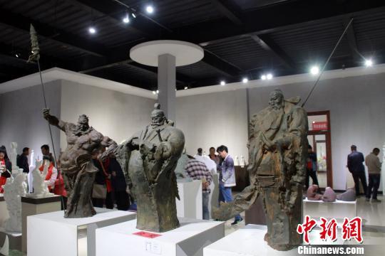 玻璃钢材质的创新雕塑作品“刘关张”。 于俊亮 摄