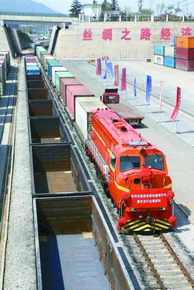 4月13日,来自乌兹别克斯坦的通用汽车整车50个集装箱班列驶入连云港中哈物流合作基地。1天之后,该批汽车将通过海上航线运往韩国釜山港。该项目的成功启动,填补了东行整车货源过境连云港的历史空白,同时也与西行的运输汽车配件班列无缝对接,实现了重来重去“钟摆式”运输。王健民摄/光明图片