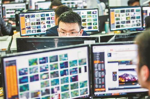斗鱼工作人员在后台对直播内容进行监管。在斗鱼平台,每天有2万余名主播同时在线,月活跃用户1.8亿左右。