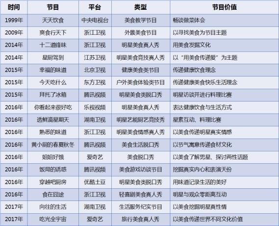图7:(部分)2015-2017纯网美食综艺