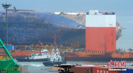 2017年3月25日,“世越”号船体整体出水。3月31日,“世越号”船体被运至木浦新港。4月9日,“世越”号上岸作业启动。11日,“世越”号沉船打捞作业结束。