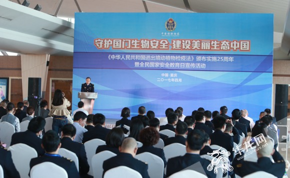 华龙网4月14日13时讯(首席记者 黄军)4月15日是第二个全民国家安全教育日,今年又是《中华人民共和国进出境动植物检疫法》颁布实施25周年。今(14)日,重庆检验检疫局在重庆江北国际机场T2航站楼开展了“守护国门生物安全,建设美丽生态”主题宣传活动,并向社会发出关注国门生物安全的倡议。