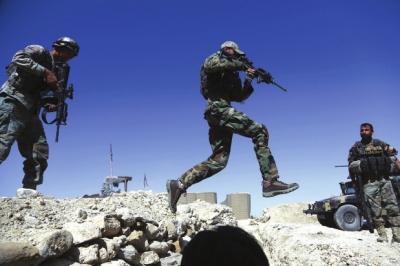 阿富汗安全部队人员在与“伊斯兰国”武装分子交火