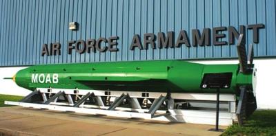 鉴于威力巨大,美军还就其使用的合法性进行讨论,最终得出结论,认定它不属于无差别杀伤性武器。这种大型炸弹由飞机投放,依靠全球卫星定位系统(GPS)制导,用于杀伤地面人员、摧毁建筑物和隧道洞口。美军还拥有一种类似重量的大型炸弹,可钻入地下,摧毁深层加固目标。