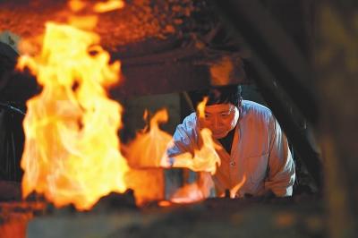 4月12日,西平县棠溪宝剑锻制工艺传承人做锻打前的准备。 |