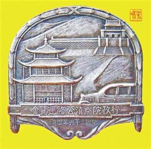 | 1937年4月制作的“行政院京滇公路周览会”纪念铜章,上有南京中华门和昆明大观楼图案 |